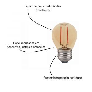 Conteúdo da Embalagem1 Lâmpada Led Globo Bolinha G45 E27 Retro Âmbar 2W Bivolt Avant