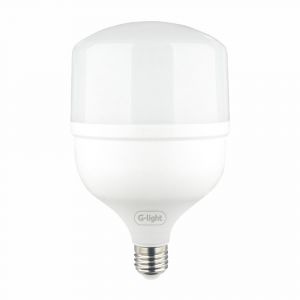 A Lâmpada LED Bulbo T100 50W E27 6500K Bivolt da G-Light oferece iluminação branca fria, ideal para grandes ambientes, com alta eficiência energética, compatível com soquete E27 e tensão bivolt (127V/220V).