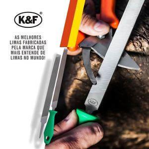 Lima Enxada K&F 8 faz parte das Limas Chatas Bastardas que são utilizadas na mecânica e ferramentaria para desbaste ou remoção rápida de metais, e as murças para acabamento. Possui um corte simples, e geralmente são utilizadas para afiar enxadas, arados, machados, facões, facas, tesouras e entre outras diversas ferramentas de corte.