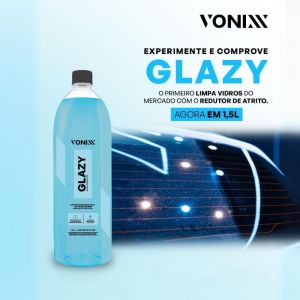 - Glazy é um produto 4 em 1, desenvolvido para vidros em geral, que limpa, protege, condiciona e atua como redutor de riscos.