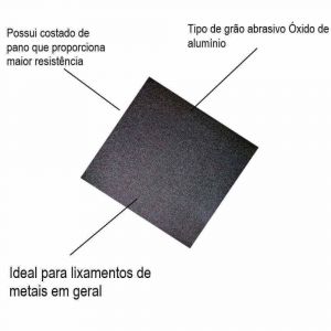 - Indicada para o lixamento de metais em operações de maior remoção de material, nas quais são necessárias uma lixa com maior resistência.