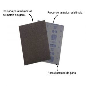 Assegurando alta qualidade e segurança, indicada para lixamentos de metais em geral, ferro, preparação de superfícies, pinturas velhas, entre outros. Pode ser aplicada tanto em lixamento manual quanto com máquinas vibratórias. Não perca tempo e venha já adquirir o seu!