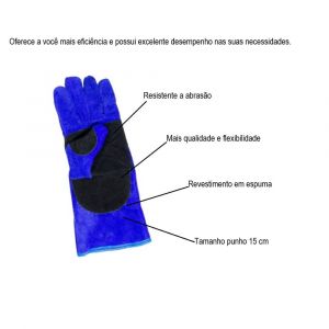 Garante ótima qualidade, é ideal para proteção dos membros superiores, mãos e punhos, contra agentes térmicos (calor e chama), calor radiante, agentes mecânicos, abrasivos, escoriantes e impacto de respingos de metais fundidos. Possui dorso sem costura em peça única. Costura em material super resistente. Com forração dispersante de calor e suedine de algodão que traz mais conforto ao operador. Suporta temperaturas de contato por volta de 100ºC no tempo de retardo acima de 15 segundos. Adquira já o seu!