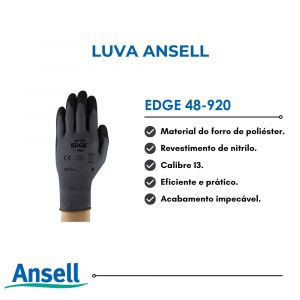 Conteúdo da Embalagem1 Par de Luva EDGE 48-920 Tamanho 9 Ansell.