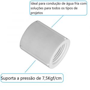 - Todos os produtos desta seção são feitos em PVC, suportando a pressão 7,5Kgf/cm², produzidos na cor branca segundo a determinação das normas brasileiras.