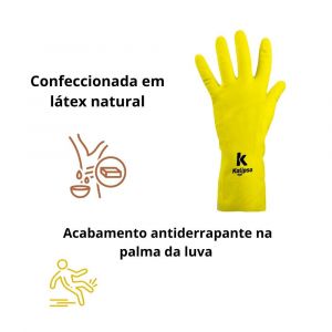 Conteúdo da Embalagem1 Par de Luva de Borracha Látex Tamanho P Amarela Kalipso
