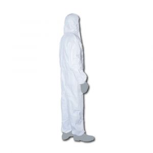 Macacão SELIC confeccionado em 100% polietileno, com capuz acoplado, e ajustes elásticos em mangas e barras, atua contra partículas sólidas e substâncias sintéticas ou orgânicas inaláveis,leve, respirável e adequado para ambientes industriais.