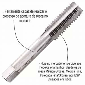 - Hoje no mercado temos diversos modelos e tamanhos, desde os de rosca Métrica Grossa, Métrica Fina, Polegada Fina/Grossa, aos BSP utilizados em tubos.