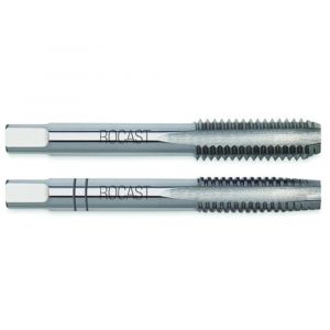 O Macho Seriado em Aço Liga Rosca Unificada UNF 3/8 Pol. x 24 - 2 Peças da Rocast com descrição curta refere-se a uma ferramenta utilizada para fazer roscas internas com precisão em peças metálicas.