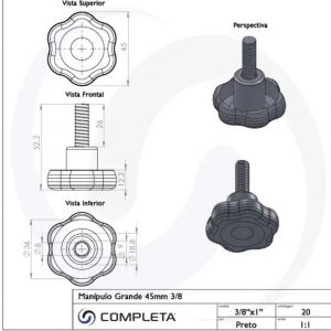 - O manípulo 45mm 3/8 x 1 Pol. é indicado para aperto e regulagem manual de peças, dispensando o uso de ferramentas.