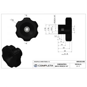 Conteúdo da Embalagem1 Manípulo Fêmea 45mm 1/4 Pol. Completa
