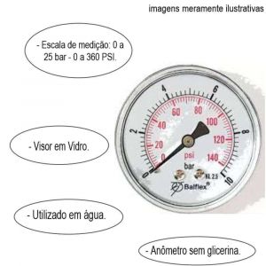 Conteúdo da Embalagem1 Manômetro Seco 0 a 25 BAR 0 a 360 PSI Balflex