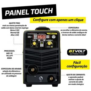- Com capacidade para soldagem nos processos MIG com arame tubular (sem gás), TIG LIFT e MMA (eletrodo revestido), oferece excelente desempenho em diferentes aplicações.