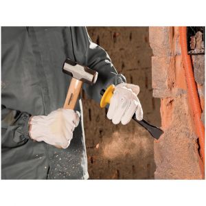 - É produzida com cabeça em aço especial e cabo em madeira, que leva mais segurança ao manuseio, já que é fixado à cabeça por cunha metálica.