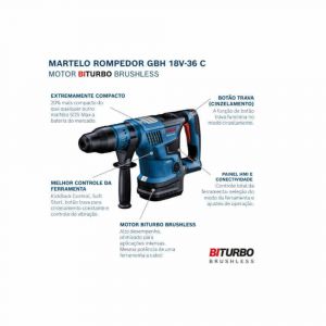 Martelete bat gbh 18V-36 C biturbo, 18V sb Sem bateria