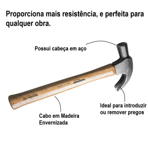 - Ideal para introduzir ou remover pregos, além de rasgar e remover componentes estruturais de madeiras.