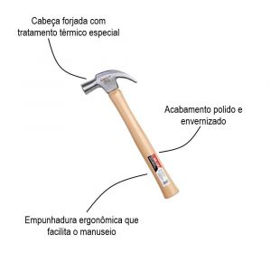 Empunhadura ergonômica que melhora a distribuição do peso e facilita o manuseio, cabeça e curvatura da unha que facilitam a alavanca durante a remoção dos pregos. Confira agora mesmo!