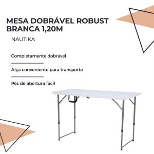 - A Mesa Dobrável Robust da NTK é a escolha definitiva para aqueles que buscam a excelência em mesas para eventos ao ar livre. Com capacidade para suportar até 100kg, ela é perfeita para refeições ao ar livre, festas e celebrações.