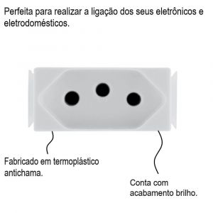 Garante um contato perfeito com a rede elétrica, perfeita para realizar a ligação dos seus eletrônicos e eletrodomésticos, de excelente qualidade, fabricado em termoplástico antichama, conta com acabamento em brilho ele não retém poeira, facilitando o uso e deixando o visual mais limpo. Venha e adquira o seu!