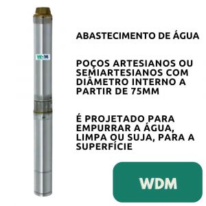 Conteúdo da Embalagem1 Unidade de Motobomba Submersa SPE 3" 15-1-22 1,5CV 220V 2 Fios WDM