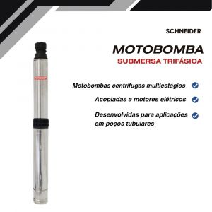 - Bomba Schneider centrífuga multiestágio, acopladas a motores elétricos projetados especialmente para funcionar dentro da água, a grandes profundidades.