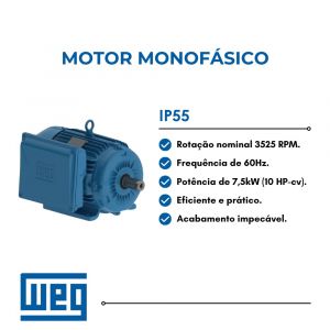 Conteúdo da Embalagem1 Motor Monofásico 10CV 2 Polos Fechado 220V IP55 Rural WEG.