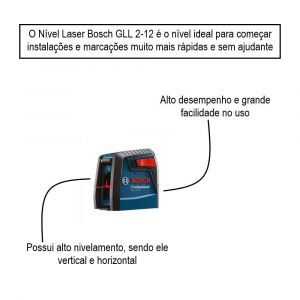 Nível a laser Bosch GLL 2-12 alcance 12m com suporte