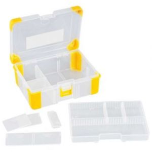 - Compacto e funcional, possui 11 divisões internas que facilitam a separação de itens como parafusos, pregos, porcas, acessórios e até materiais de pesca.