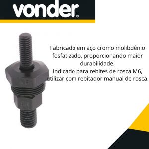 Garante excelente qualidade e fabricado em aço cromo molibdênio fosfatizado, proporcionando maior durabilidade é ideal para rebites de rosca M6, utilizar com rebitador manual de rosca.