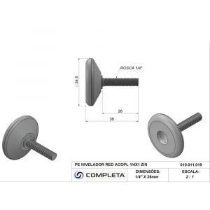 Pé Nivelador Redondo Acoplado 1/4 x 1 Pol. Zincado