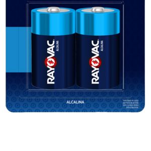 - A Pilha Alcalina Rayovac C2 é indicada para equipamentos que exigem descarga energética contínua e de média a alta potência.