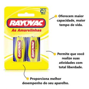 Conteúdo da Embalagem1 Unidade de Pilha Amarelinha C2 Com 2 Unidades Rayovac