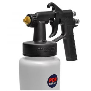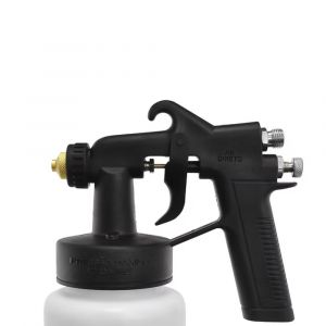 - Possui corpo em plástico de alta resistência, gatilho ergonômico e acompanha dois bicos de latão (reto e leque), proporcionando versatilidade no padrão de aplicação. Seu copo inferior translúcido de 600 ml permite fácil visualização do nível da tinta ou líquido utilizado.