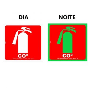 - Produzida em material fotoluminescente, no formato quadrado 25x25cm, inclui a legenda "CO²", além do pictograma de extintor, ideal para indicar a localização do equipamento.