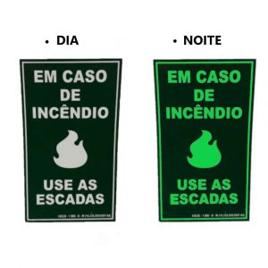 Placa de Sinalização 30X18 Luminescente Incêndio Use a Escada