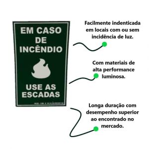 Conteúdo da Embalagem1 Unidade de Placa de Sinalização 30X18 Luminescente Incêndio Use a Escada