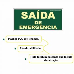 Conteúdo da Embalagem1 Unidade de Placa de Sinalização Luminescente 30X18cm SAÍDA DE EMERGÊNCIA