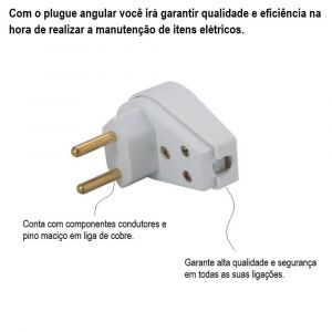 Conteúdo da Embalagem1 Plugue Angular 2P+T 10A 250 Volts Branco - 57402110 Tramontina