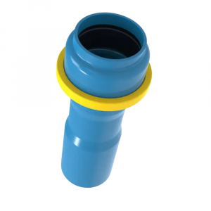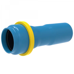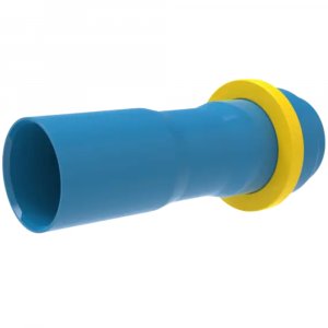 - Possui em uma extremidade uma bolsa femea soldável unida por adesivo e na outra extremidade uma bolsa femea com anel de encosto sobre ela.