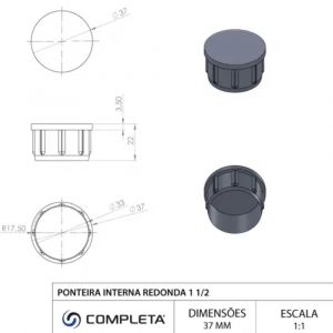 Ponteira interna redonda 1.1/2 pol preta, ideal para acabamento interno de tubos e pés de móveis, reduzindo ruídos e protegendo o piso.