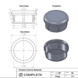 - A ponteira interna redonda 1.1/8 pol preta é produzida em material resistente, indicada para proteção e acabamento das extremidades de tubos.