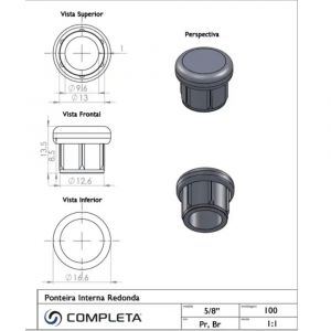 - A Ponteira Interna Redonda 5/8 Pol. Preta Completa é indicada para o fechamento e acabamento interno de tubos metálicos.