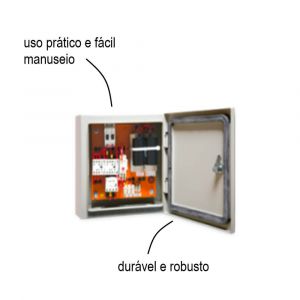 - Caixa metálica produzida com pintura eletrostática a pó para garantir segurança e qualidade.