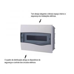 - O quadro de distribuição serve como conector entre a potência certa para cada aparelho de acordo com o nível de carga que ele consegue suportar.