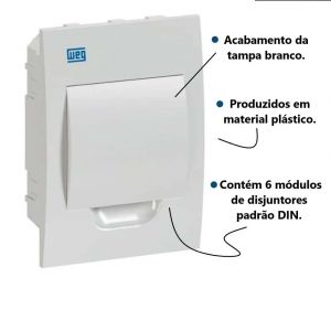 Conteúdo da Embalagem1 Quadro de Distribuição Para 6 Polos DIN Embutir Branco Weg