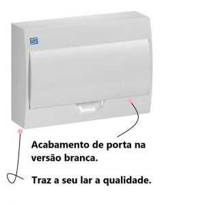 -  É produzida em material plástico e dimensionada para instalação de 12 módulos de disjuntores padrão DIN. Acabamentos de porta na versão branca.