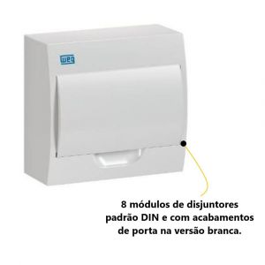 Conteúdo da Embalagem1 Quadro de Distribuição Para 8 Polos Sobrepor PVC Branco Weg