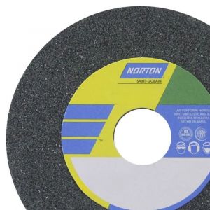 Rebolo Reto Norton 10x1x1.1/2" G100 da linha KVK. Projetado para afiação de precisão em aços de alta dureza, oferece tecnologia de corte frio para evitar o superaquecimento. Ideal para ferramentas HSS, garantindo acabamento fino e durabilidade.