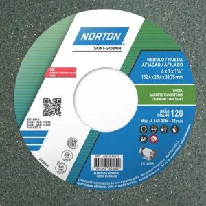 - O Rebolo Reto Norton G120 da linha KVK é uma ferramenta abrasiva de alto desempenho, projetada especificamente para operações de retífica e afiação de precisão.