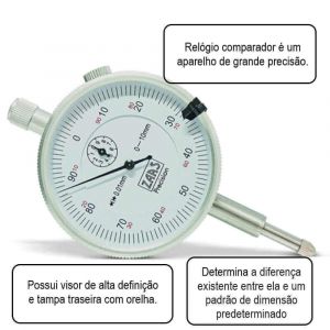 O Relógio comparador realiza a medição indireta de peças, comparando-as com um padrão pré-estabelecido.